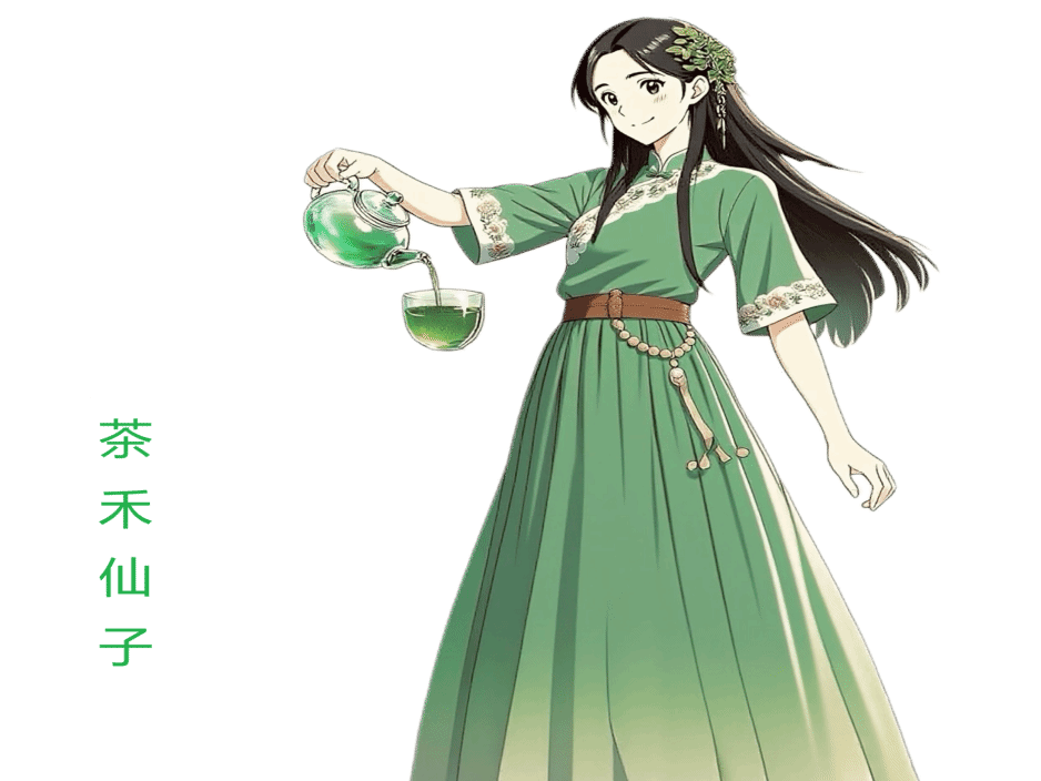 结合白沙镇特有的沙砾质土壤温养的绿茶,“新芽物语”突击队设计了代表白沙镇绿茶特色的主IP茶禾仙子如下图: