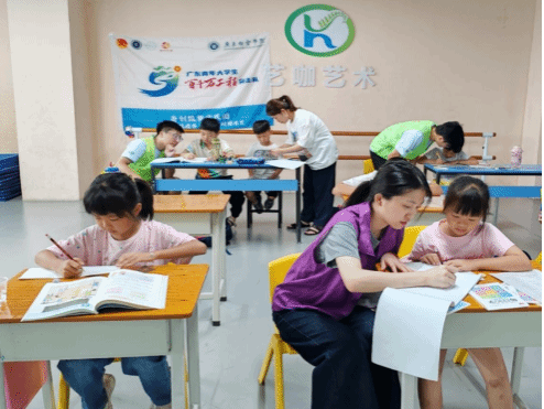 在综合美术活动中,突击队成员主动与孩子们交流,根据他们的构思辅助完成作品,并组织互动小游戏、讲有趣小故事活跃课堂气氛。作业指导班则由突击队承担监督和指导责任,督促孩子们完成暑期作业,针对数学题、古诗词背诵、英文单词学习等进行细致辅导,帮助孩子们巩固所学知识。(图文/电气与信息工程学院杨雅麟、付天同 责任编辑曾进、赵利兴)
