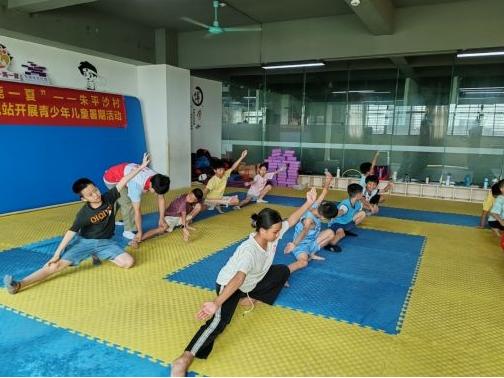 为满足乡村青少年的多元需求,活动除核心科技内容外,还设置了武术、综合美术、作业指导班等辅助活动。在武术活动中,突击队成员与专业武术老师紧密协作,教授孩子们五步拳,他们专注观察孩子们的动作细节,在武术老师示范讲解后,逐一对学生的出拳的角度、踢腿的高度、马步的稳健度等招式进行纠正,帮助孩子们掌握规范动作,增强身体素质。