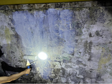 抵达井塘村后,实践团队首先面临的便是墙面“先天条件不足”的挑战:部分墙面存在发霉、脱皮现象,周边杂草丛生不仅影响施工空间,还可能影响墙绘长期保存。“不能为了绘画破坏墙面本身,更要给村民留下整洁的环境。”团队迅速制定解决方案:用温和制剂处理斑驳墙体再用小铲具清理墙面霉斑,避免大规模损伤墙体;全员动手拔除杂草、平整地面,既为墙绘腾出展示空间,也为后续墙面修护做好铺垫。