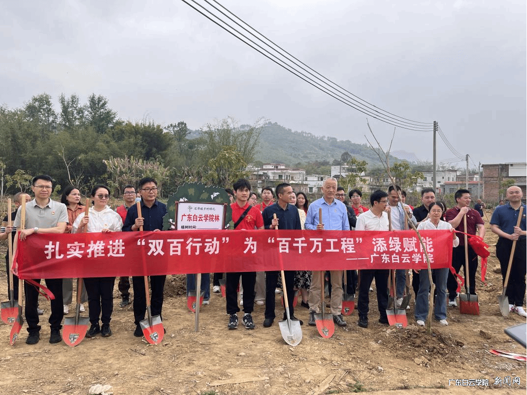 为积极响应省委、省政府关于乡村振兴及“绿美广东”生态建设的号召,助力“双百行动”,4月11日,广东白云学院联合清新区区委组织部及清新区石潭镇人民政府,组织学校教职工代表及学生志愿者赴清新区石潭镇南楼村开展义务植树活动,以实际行动为乡村振兴和生态文明建设贡献高校力量。